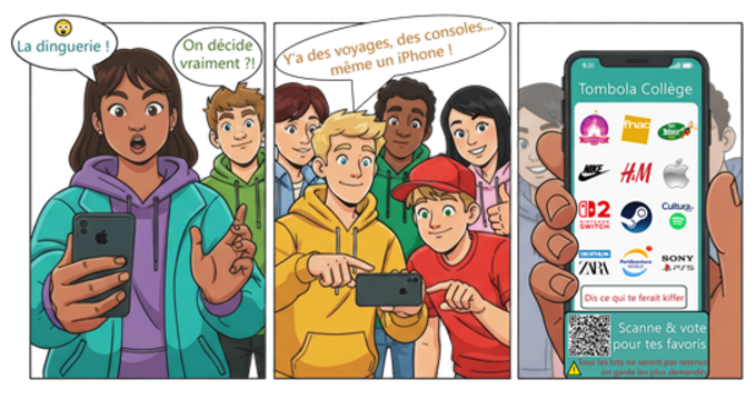 Par Admin Jean Dieuzaide, publié le vendredi 3 octobre 2025 21:30 - Mis à jour le vendredi 3 octobre 2025 21:30Cette année, la tombola de décembre sera un peu spéciale : ce sont les élèves qui choisissent les lots à gagner ! Un sondage leur a été transmis pour voter et donner leurs idées.