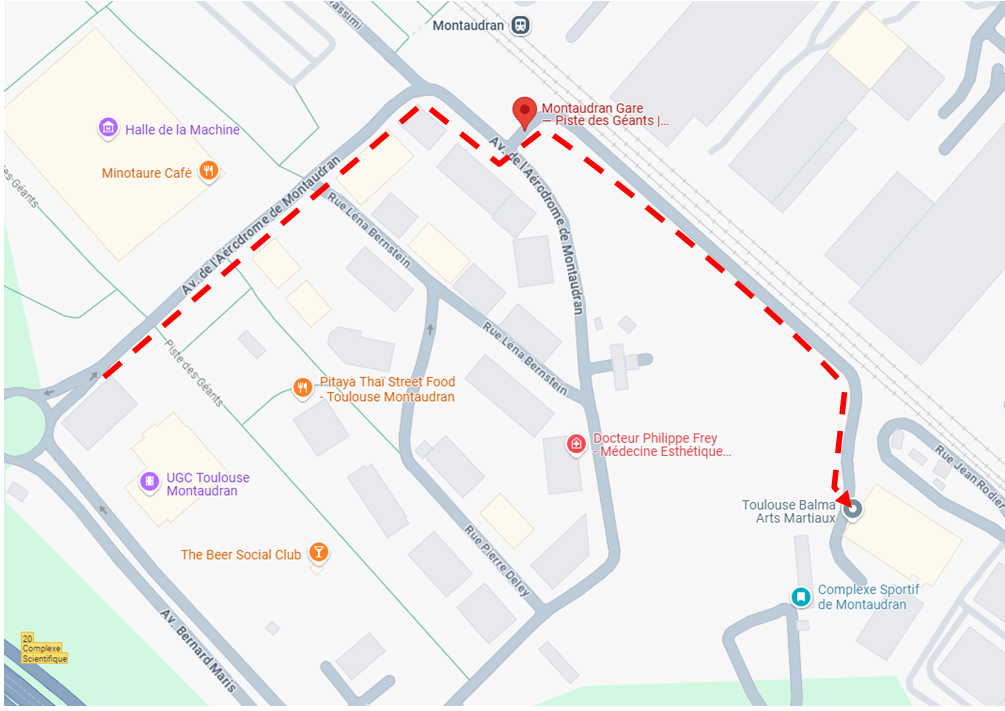 Lieu : Le stage se déroulera au Dojo de Montaudran – Complexe sportif de Montaudran – Dojo (salle) – Avenue de l’aérodrome de Montaudran tout proche de la halle de la machine (Cf. Plan).