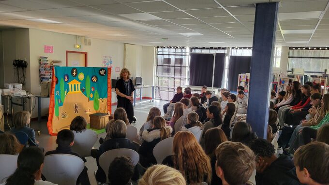 Par PASCALE GOSSARD, publié le mardi 25 novembre 2025 16:08 - Mis à jour le mardi 25 novembre 2025 16:09Brigitte Mondini, conteuse accordéonniste, est venue au CDI les 18 et 20 novembre conter des récits mythologiques et des histoires des Pyrénées à tous les 6èmes. Les plus grands se souviennent avec plaisir de ses interventions. -